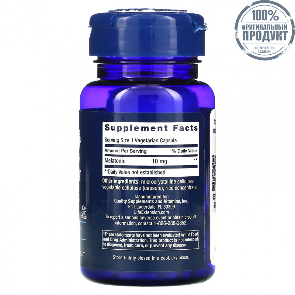 Life Extension, Мелатонин, 10 мг, 60 вегетарианских капсул
